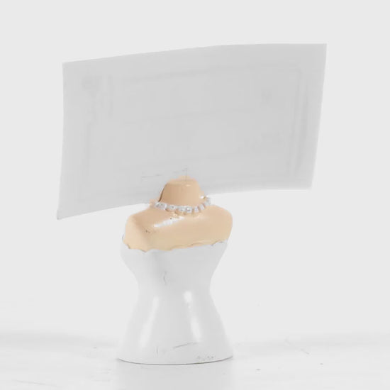 A menyasszony alakú fém névtartó praktikus választás az események asztalainak szervezéséhez. A stabil alap lehetővé teszi a névkártya, asztalszám vagy egyéb üzenetek megtartását. Könnyen illeszkedik bármilyen dekorációhoz, az elegáns rendezvényektől a hétköznapi asztalokig.