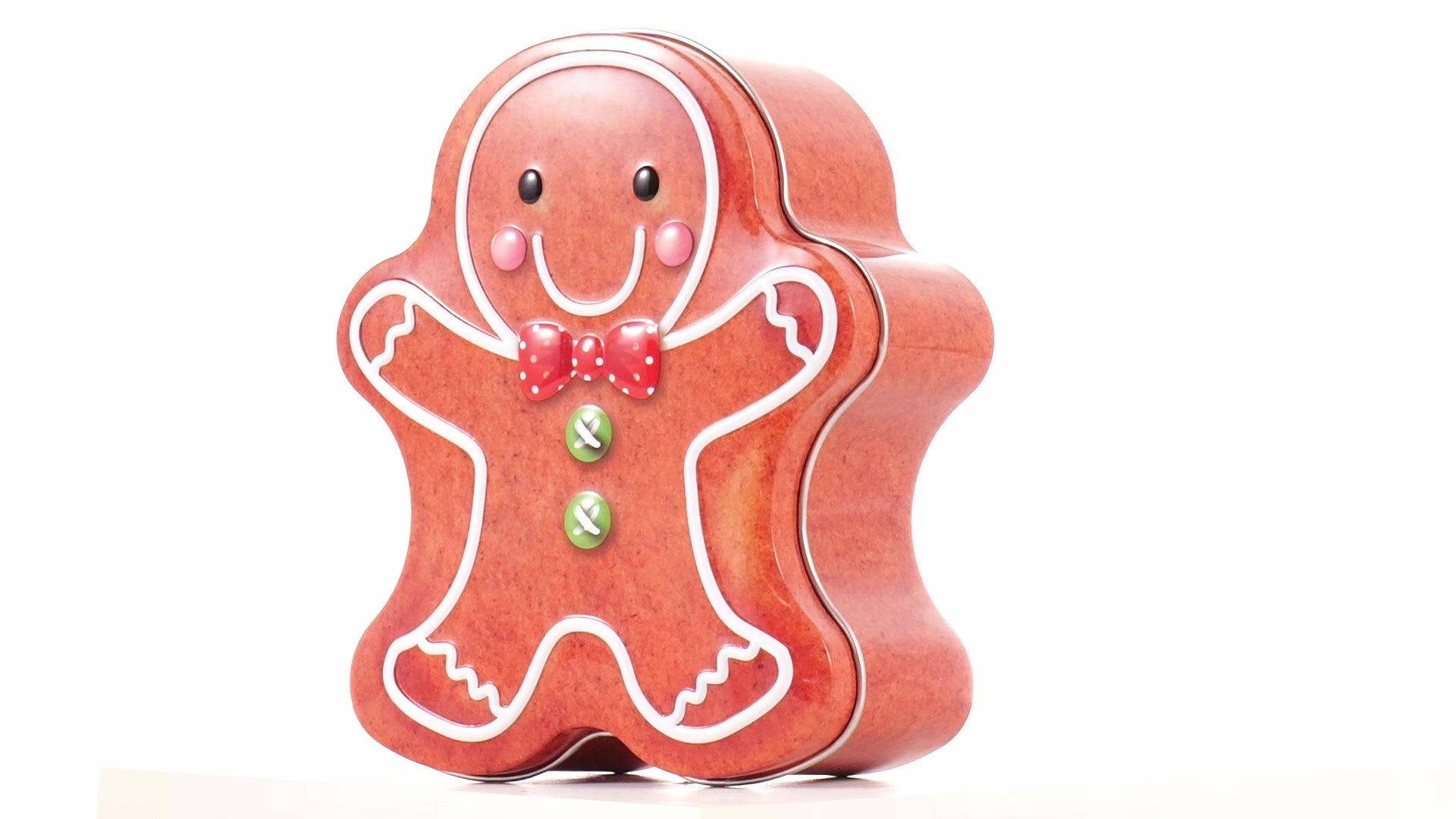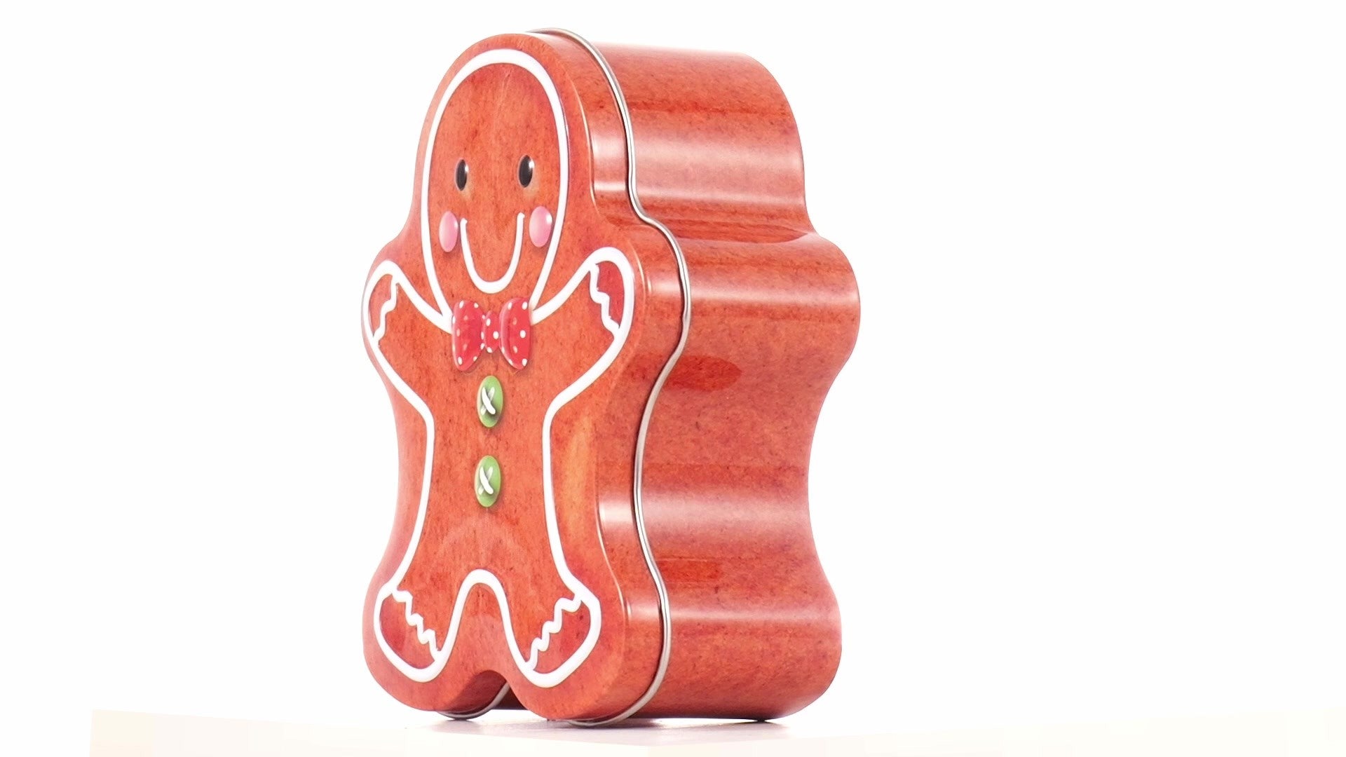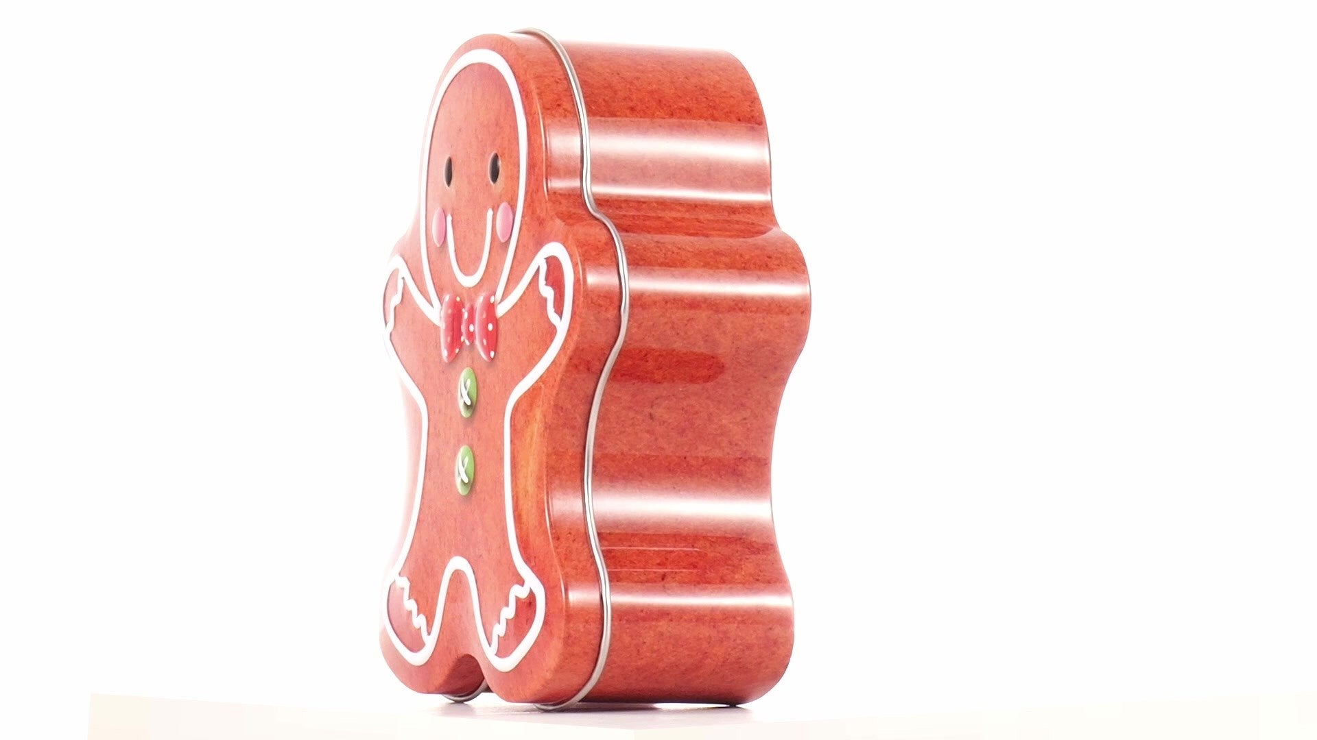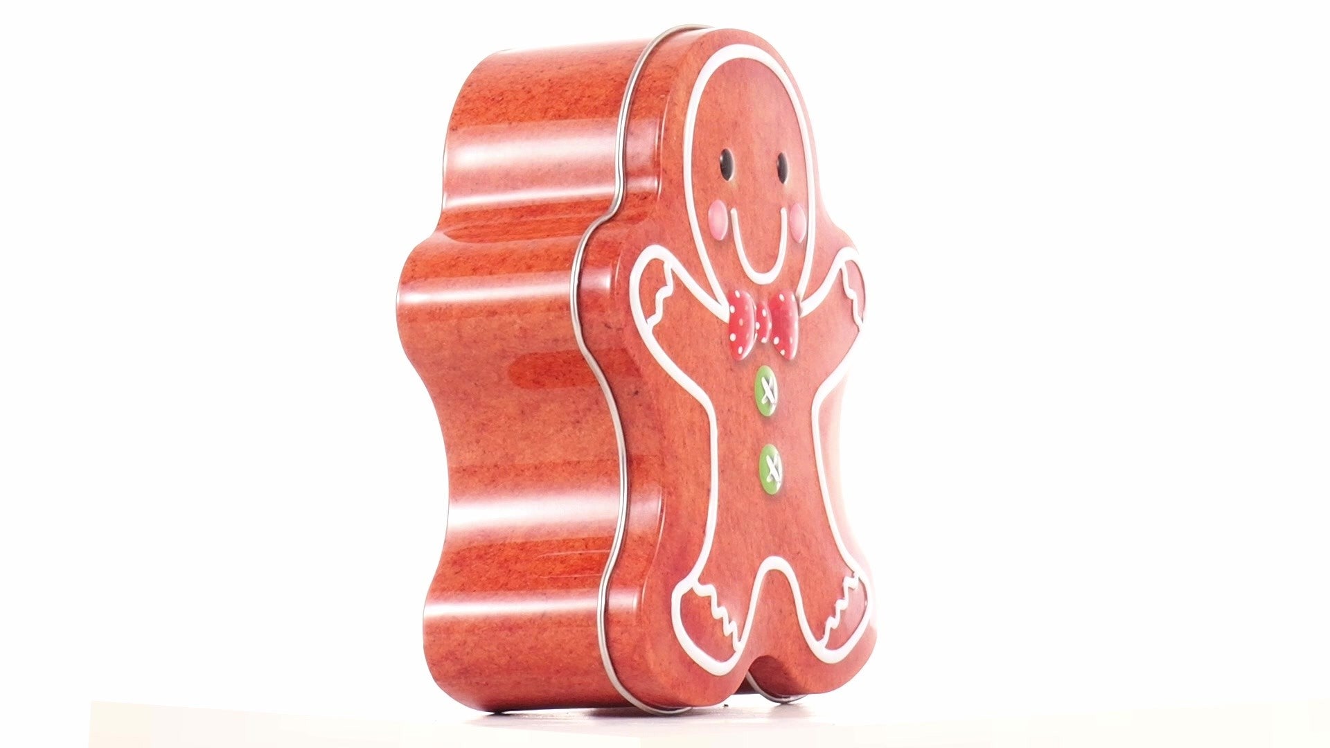 Metal box in the shape of a gingerbread man