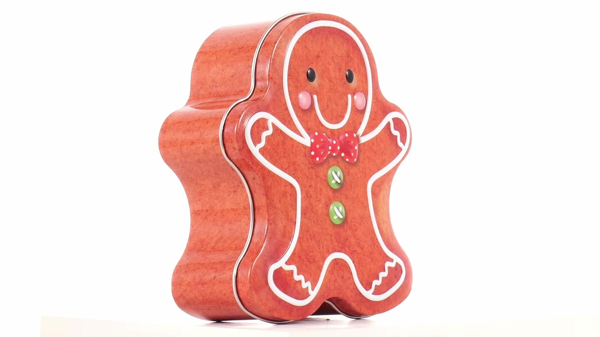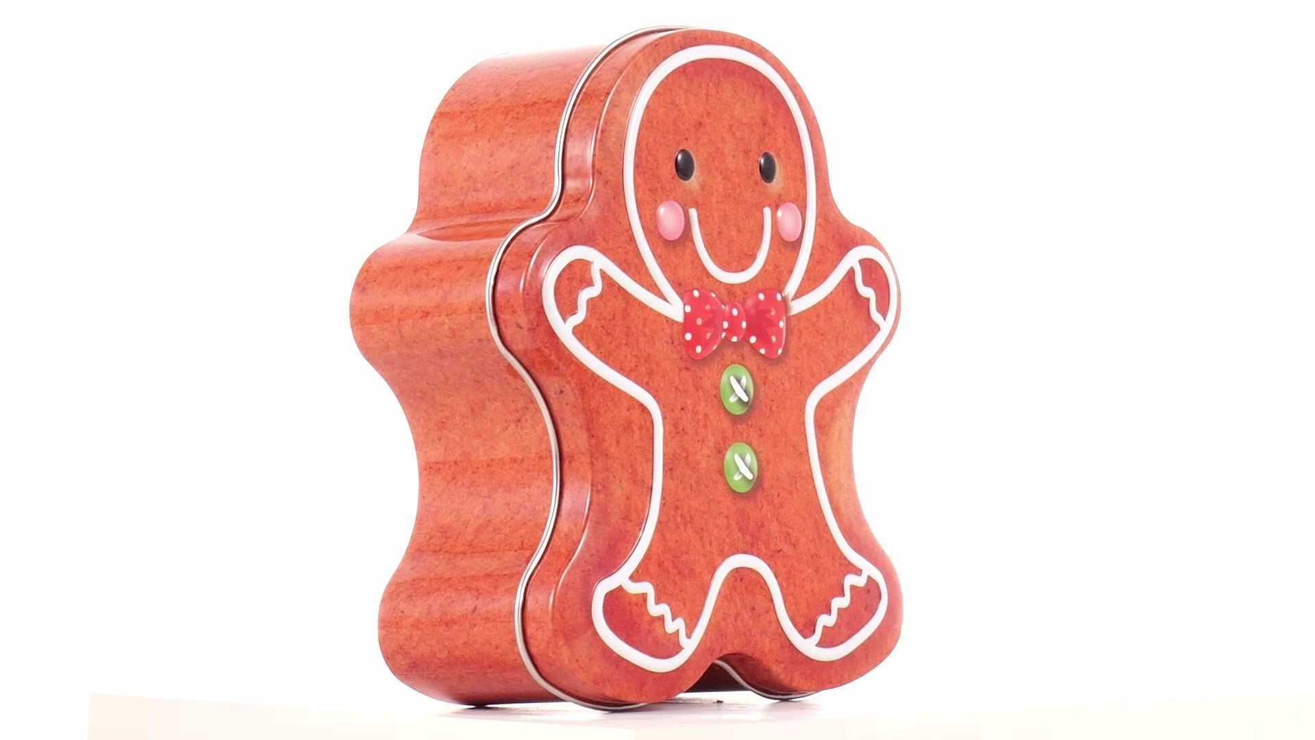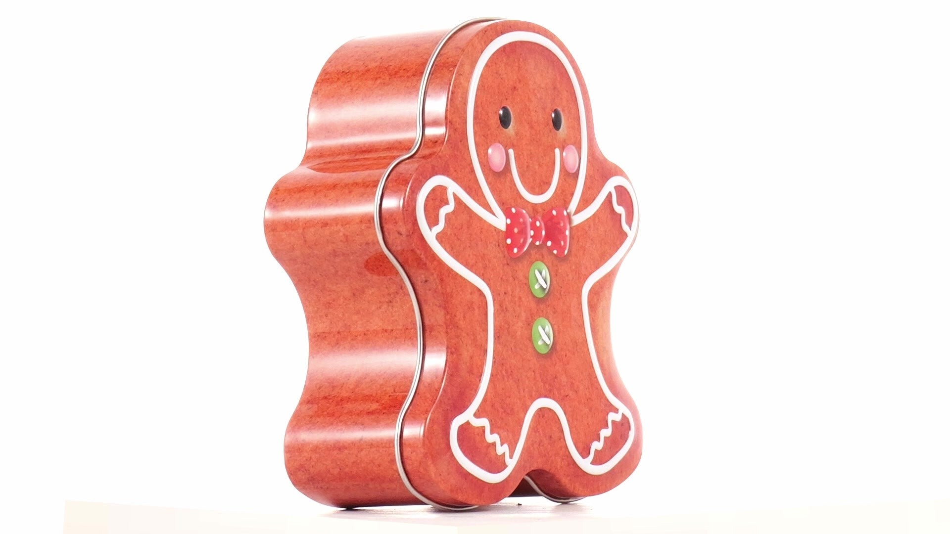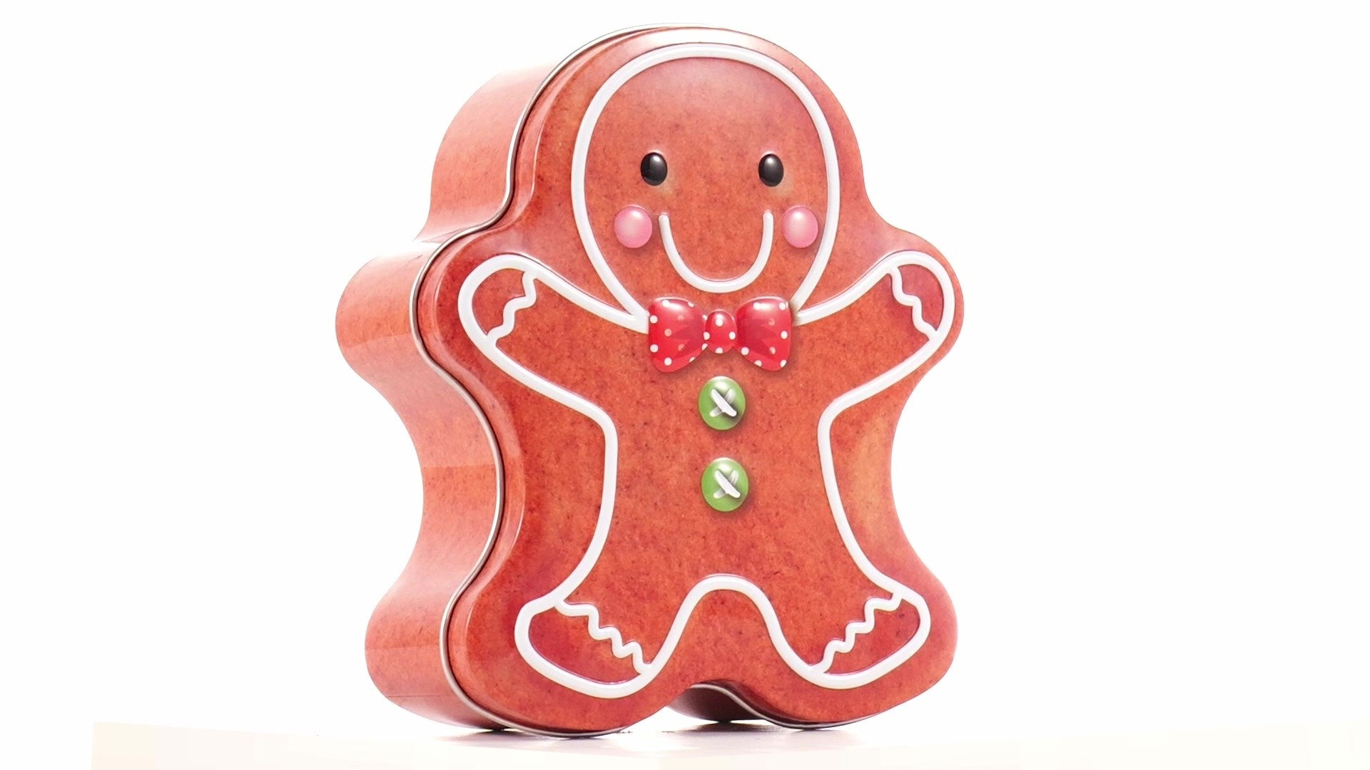 Metal box in the shape of a gingerbread man
