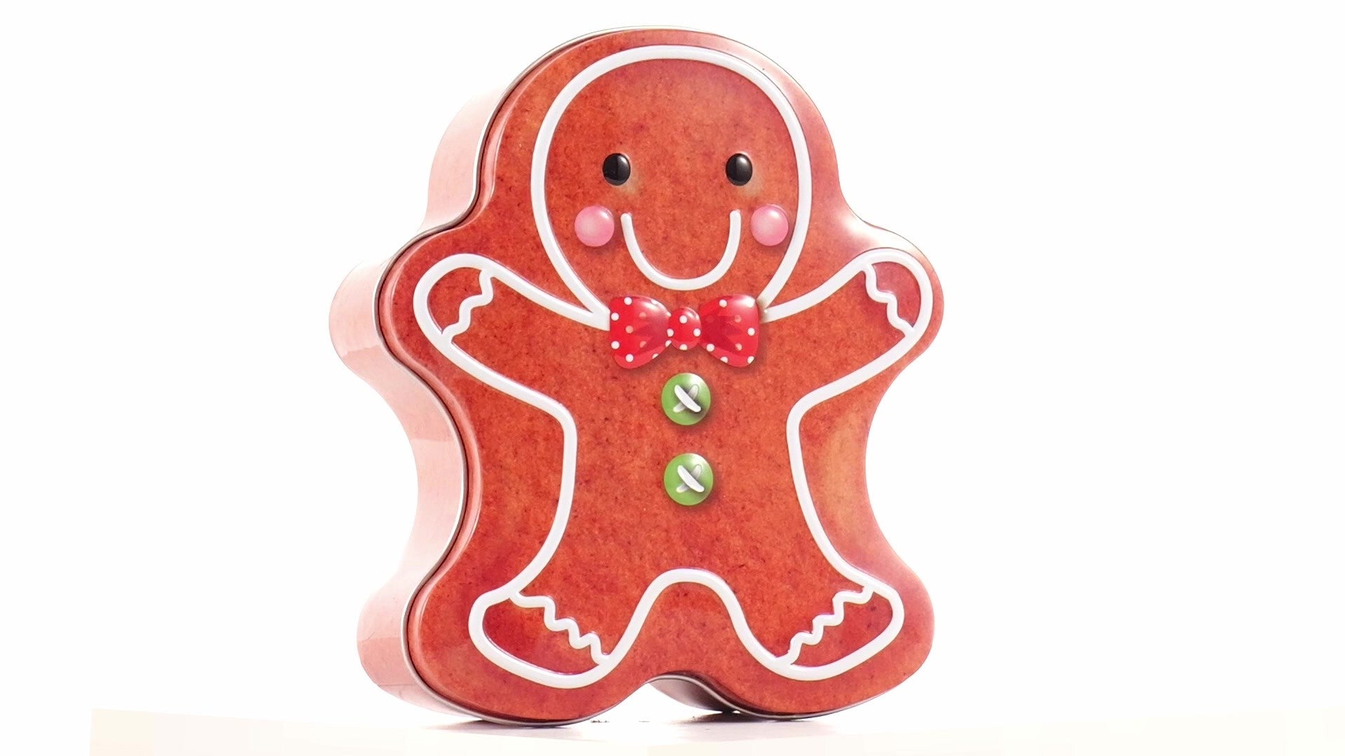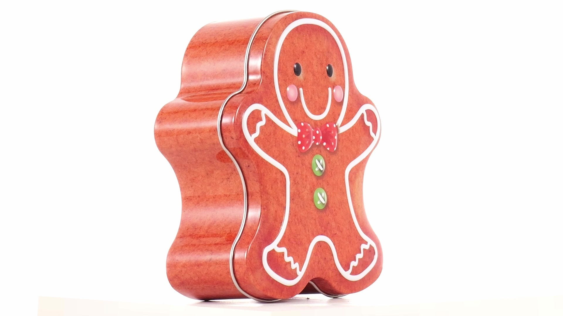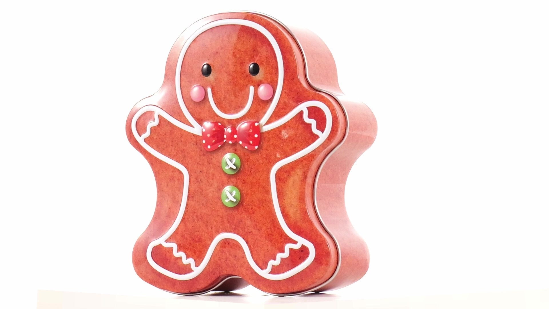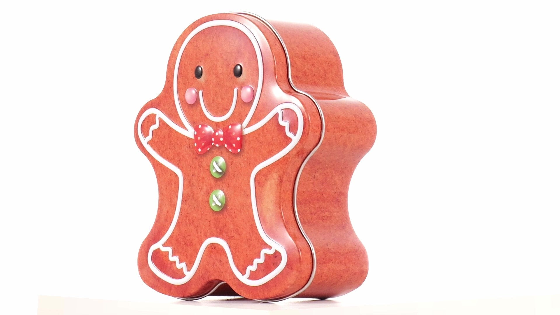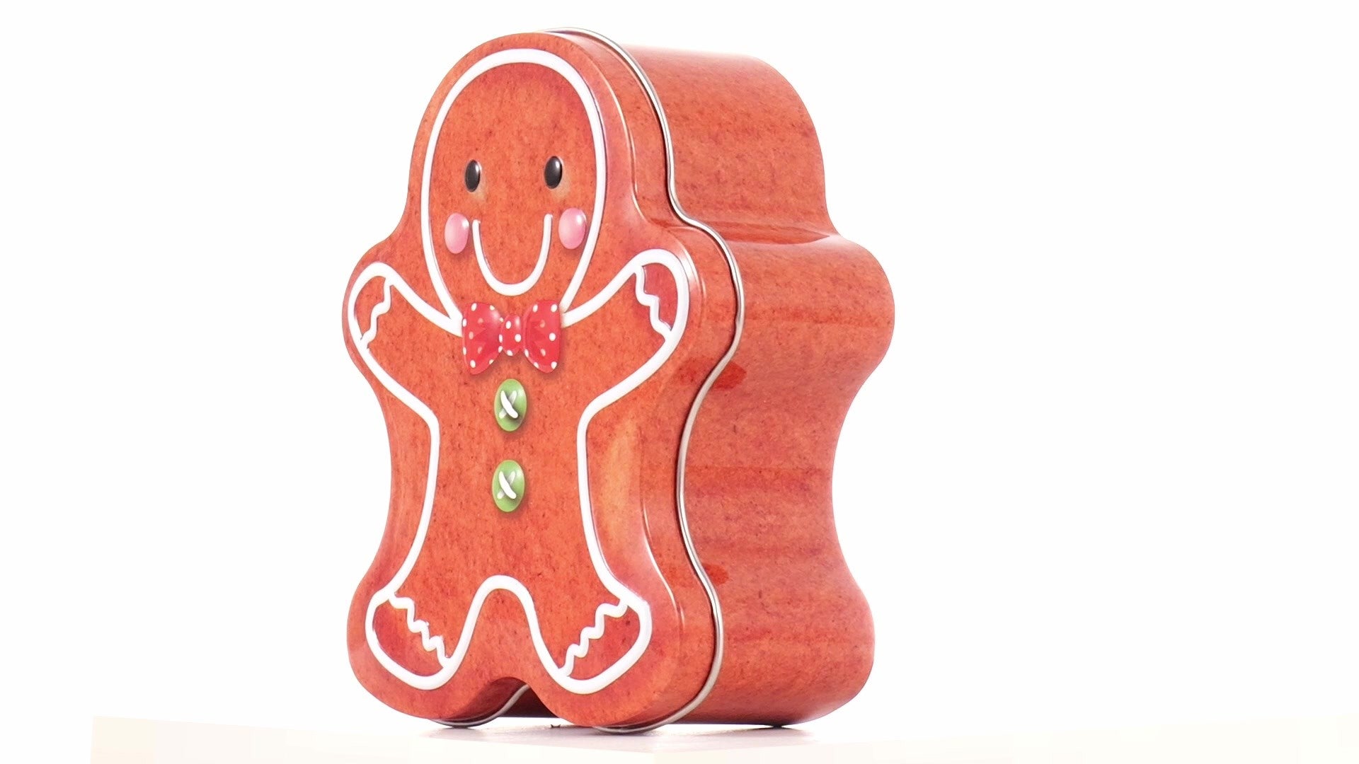 Metal box in the shape of a gingerbread man