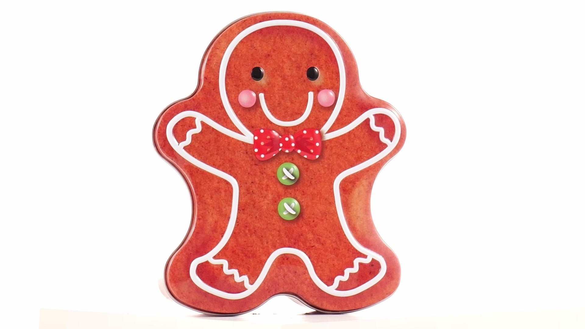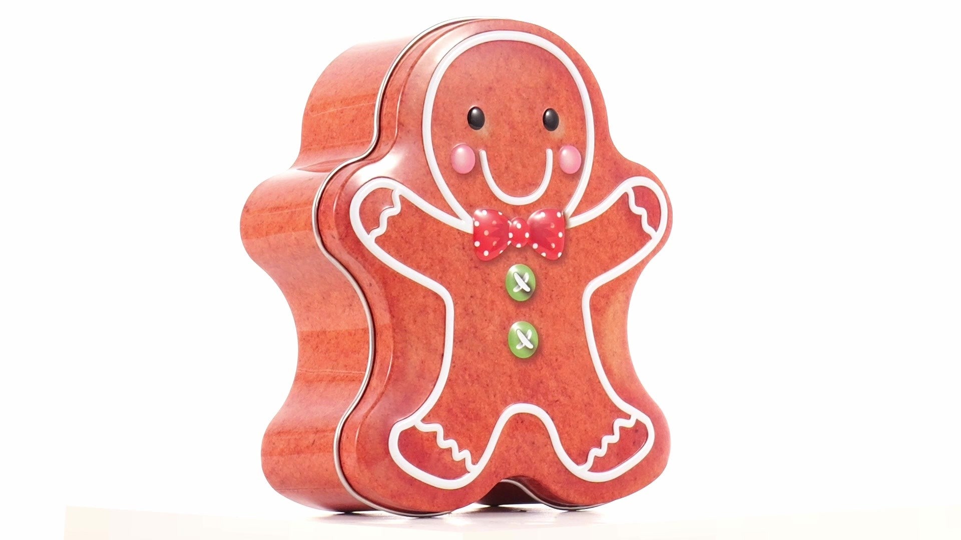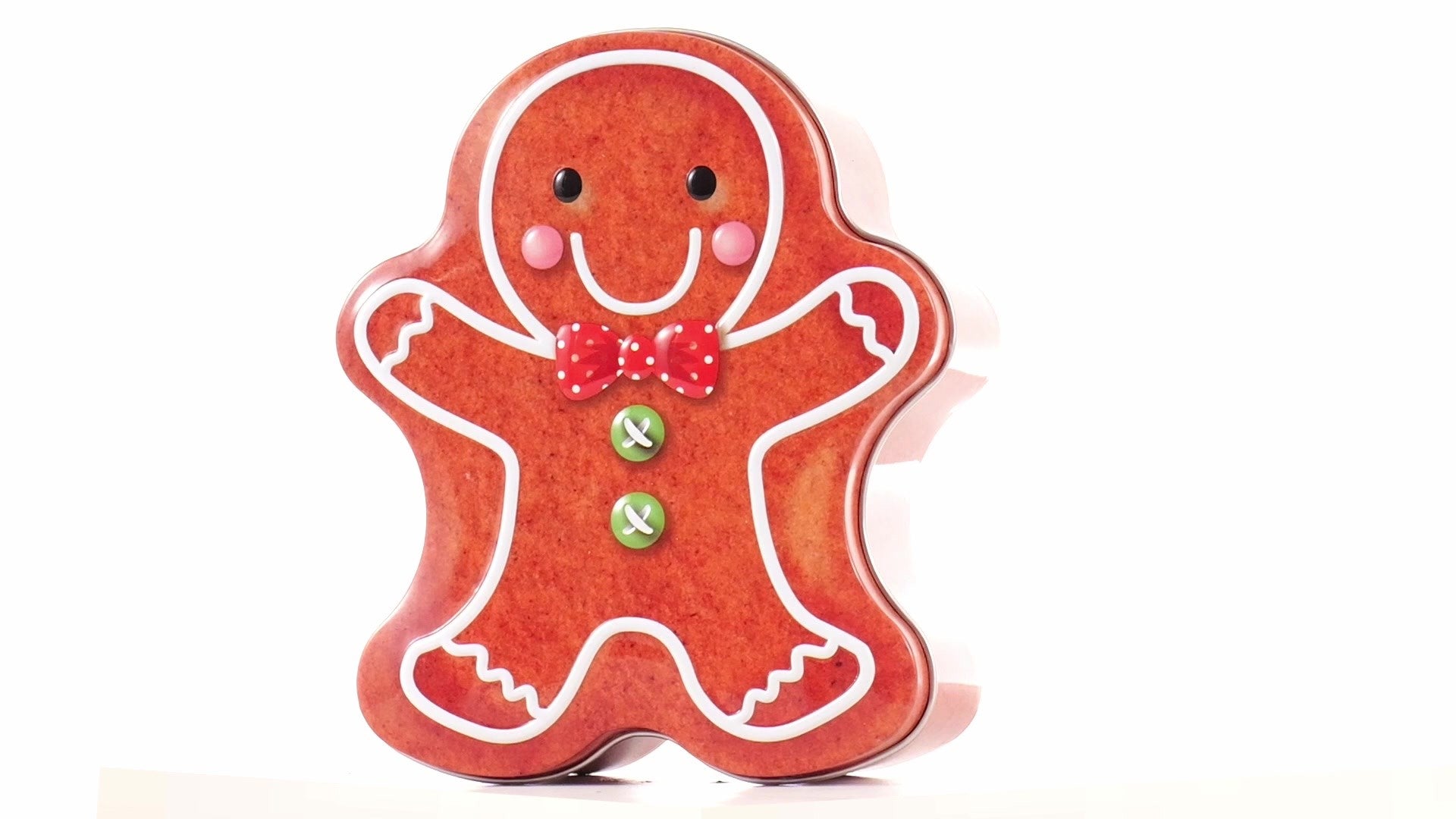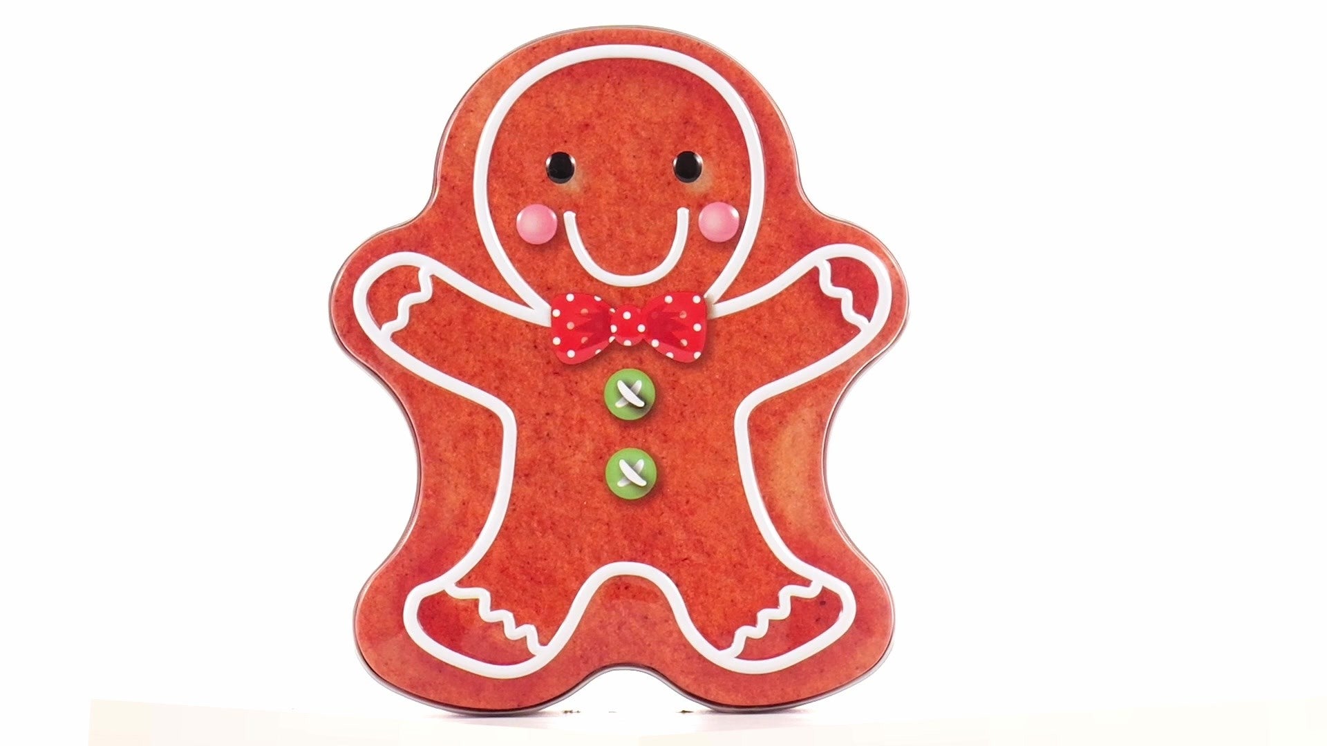 Metal box in the shape of a gingerbread man