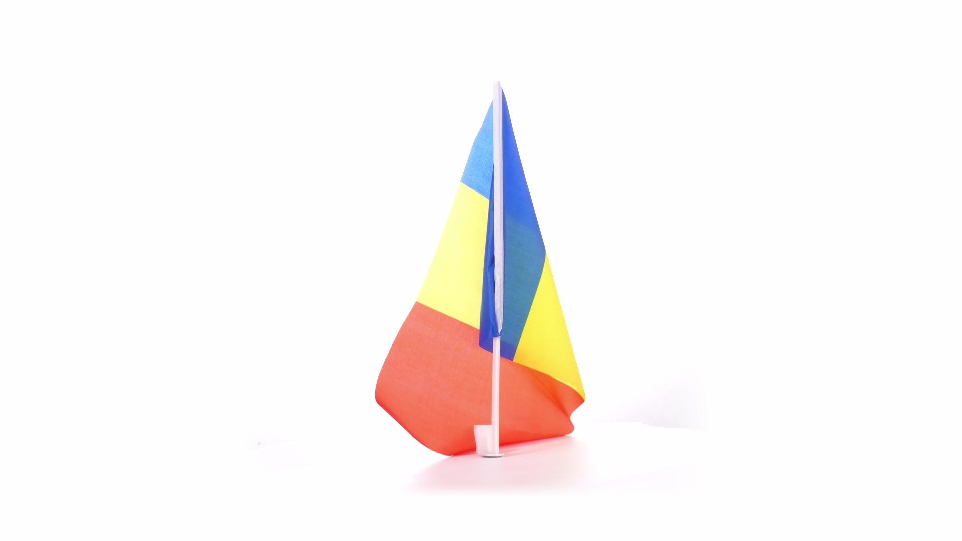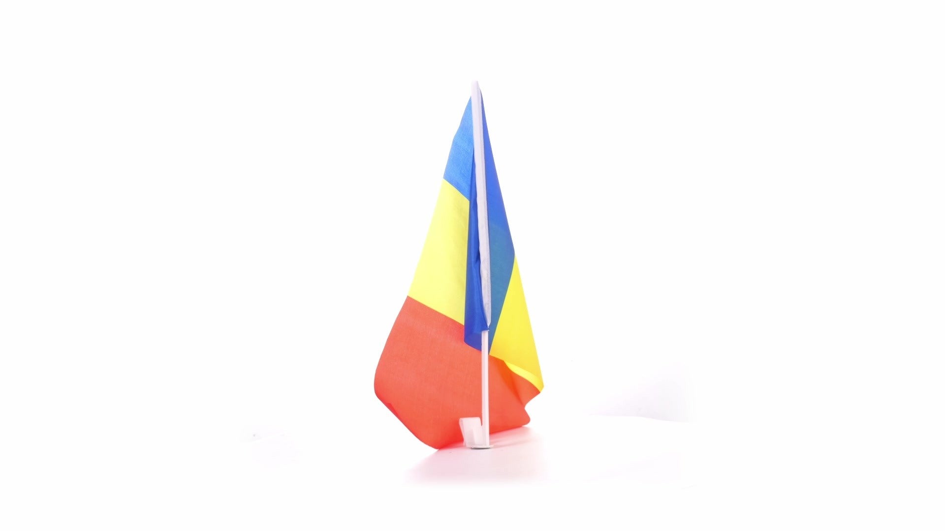 - Steagul se monteaza pe geamul lateral al oricarei masini, dupa care se ridica geamul pana sus in cheder, fixand astfel steagul